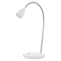 This table luminaire from the series DURENGO is made of white plastic and chrome-plated steel and operated by rocker switch. It has protective insulation and is equipped with an LED lamp for a warm white light.With their slim shape and modern luminaire foot, the luminaires from the series DURENGO will look good on any desk.