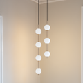 With its brass details and mouthblown opal glass globes, the Audrey pendant exudes a captivating warmth and elegance reminiscent of luminous pearls. Dimmable with an external dimmer, the delicate globes gracefully diffuse light, creating a calming ambience.