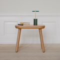 With a wooden base in solid oak, the multi-use table offers a variety of tops to suit your style or needs. Choose from a natural oak veneer top or the luxurious elegance of green marble or opt for the sleek tray top in plated brass, brushed steel, pearl white, anthracite grey, or the serene olive green. The Paff table is available in low and tall – with short or long legs, making it ideal as a side table for your favourite book and a cup of tea, a creative drawing table for the little ones, or a tray table to accompany your morning coffee on its journey from the kitchen to your bed.
