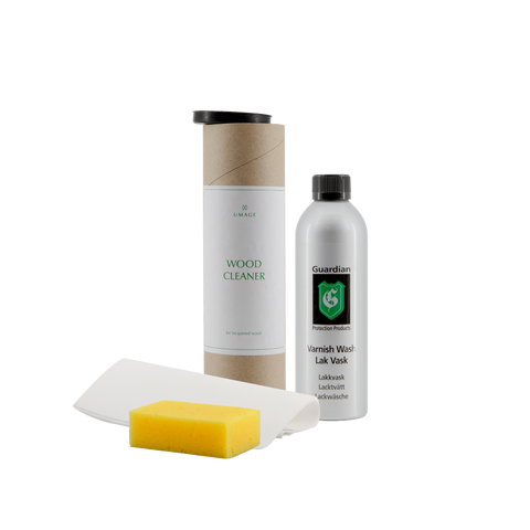 The varnish wash care kit by Guardian is specifically designed to clean, care for, and protect matte, lacquered surfaces on all types of wood. This water-based formula is free from solvents, ensuring a gentle yet effective treatment for your furniture. Tested and certified by the Danish Technological Institute, it has been awarded "The Indoor Climate Label.