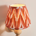 Features & Benefits: Natural Ash wooden turned spindle wall light. Handmade gathered pleated tapered shade. Digitally printed apricot orange faux silk fabric. Taped edge detailing with plain inner lining. Brass B22 metal lamp holder. Dimmable. Compatible with B22 LED lamps