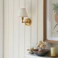 Features & Benefits: Easy placeable USB rechargeable wall light. Brushed aged brass plated finish. Handcrafted taped edge tapered shade. Vintage white cotton mix fabric. Almond white contrasting taped edge detail. 1.5W Integrated LED 2700K warm white. 3 stage touch dimmer - 40lm / 80lm / 155lm. 5.5 hours to full charge, producing up to 36 hours of light. Complete with USB-C to USB-A charging cable. Rechargeable battery included (3.7V 3600mA)