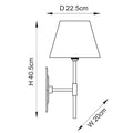 Features & Benefits: Hand crafted solid cast wall back. Brass patina finish. Handcrafted taped edge tapered shade. Vintage white cotton mix fabric. Almond white contrasting taped edge detail. Authentic brass B22 lamp holder. Dimmable. Compatible with B22 LED lamps. Arm and wall back requires assembly, fixing tool included