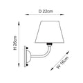 Features & Benefits: Brushed aged brass plated. Authentic brass B22 lamp holder. Handcrafted taped edge tapered shade. Vintage white cotton mix fabric. Almond white contrasting taped edge detail. Dimmable. Compatible with B22 LED lamps. Arm and wall back requires assembly, fixing tool included