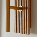 This single wall light blends warm materials and refined detailing, featuring a clear ribbed curved glass shade that diffuses light with soft texture and elegance. The grooved walnut-stained wooden backplate adds rich natural character, making it an ideal complement to interior spaces with slatted wooden panelling. Finished with a sleek brass-toned arm, it offers a harmonious mix of modern design and organic warmth—perfect for layered, architectural interiors.