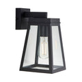 Features & Benefits: Weather resistant die cast aluminium & steel. Matt black painted finished metalwork. Clear glass panels. Perfect for use with E27 LED filament lamps. IP44 rated for safe exterior use
