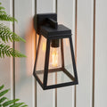 Stylish take on traditional lantern designs given a modern update for classic architecture of today. This wall light is made from weather resistant die cast aluminium and steel in a matt black finish. Perfect for use with a E27 LED filament lamp.