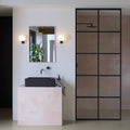 Placement Options: either side of a bathroom mirror or spaced evenly along interior walls
