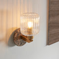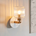 Bring refined elegance to your interior with this striking wall light, where contemporary design meets timeless materials. A solid white Volakas marble backplate provides a luxurious foundation for the sleek warm brass arm, which supports a minimalist clear ribbed glass shade that reveals the warm glow of the bulb inside. Ideal for hallways, living spaces, or bedside settings, this wall light offers a soft ambient glow while adding a sculptural touch to your decor.