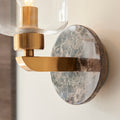 Bring refined elegance to your interior with this striking wall light, where contemporary design meets timeless materials. A solid white Volakas marble backplate provides a luxurious foundation for the sleek warm brass arm, which supports a minimalist clear glass shade that reveals the warm glow of the bulb inside. Ideal for hallways, living spaces, or bedside settings, this wall light offers a soft ambient glow while adding a sculptural touch to your decor.