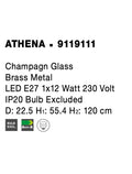 ATHENA Champagn Glass Brass Metal LED E27 1x12 Watt 230 Volt IP20 Bulb Excluded D: 22.5 H1: 55.4 H2: 120 cm