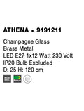 ATHENA Champagne Glass Brass Metal LED E27 1x12 Watt 230 Volt IP20 Bulb Excluded D: 25 H: 120 cm