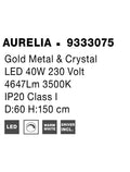 AURELIA Triac Dimmable Gold Metal & Crystal LED 41W 230 Volt 4647Lm 3500K IP20 Class I D: 60 H: 150 cm Adjustable Height