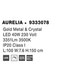 AURELIA Triac Dimmable Gold Metal & Crystal LED 43W 230 Volt 3351Lm 3500K IP20 Class I L: 100 W: 7.6 H: 150 cm Adjustable Height