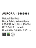 AURORA Natural Bamboo Black Fabric Wire & Base LED E27 1x12W Bulb Excluded D: 40.5 H1: 58.5 H2: 250 cm