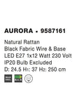 AURORA Natural Ratan Black Fabric Wire & Base LED E27 1x12W IP20 Bulb Excluded D: 24.5 H1: 37 H2: 250 cm