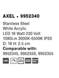 AXEL Stainless Steel White Acrylic LED 18 Watt 230 Volt 1080Lm 3000K-6500K IP20 D: 18 H: 2.5 cm Compatible with: 9952345, 9952350, 9952355