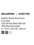 BALADONA Golden Brass Aluminium & Crystal LED G9 9x3.5W IP20 Bulb Excluded D: 73 H1: 33.5 H2: 180cm