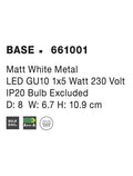 BASE Matt White Metal LED GU10 1x5 Watt IP20 Bulb Excluded D: 8 W: 6.7 H: 10.9 cm