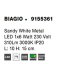BIAGIO Sandy White Metal LED 1x6 Watt 230 Volt 310Lm 3000K IP20 L: 10 H: 15 cm