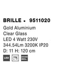 BRILLE Gold Aluminium & Acrylic LED 19 Watt 230 Volt 1232Lm 3200K IP20 D: 30 H: 200 cm Adjustable Height