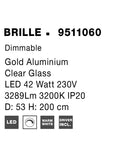 BRILLE Triac Dimmable Gold Aluminium & Acrylic LED 42 Watt 230 Volt 2710Lm 3200K IP20 D: 52 H: 200 cm Adjustable Height