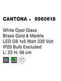 CANTONA White Opal Glass Brass Gold & Marble LED G9 1x5 Watt 230 Volt IP20 Bulb Excluded L: 22 H: 56 cm
