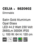 CELIA Dimmable Satin Gold Aluminium Opal Glass LED 44.2 Watt 230 Volt 2660Lm 3000K IP20 L: 100 W: 64 H: 120 cm