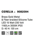 CERELIA Brass Gold Metal & Fiber braided Silicone Tube LED 15 Watt 230 Volt 1160Lm 3000K IP20 D: 40 H: 120 cm