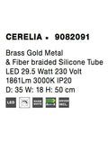 CERELIA Brass Gold Metal & Fiber braided Silicone Tube LED 29.5 Watt 230 Volt 1861Lm 3000K IP20 D: 35 W: 18 H: 50 cm