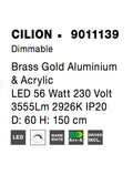 CILION Brass Gold Aluminium & Acrylic LED 56 Watt 230 Volt 3555Lm 2926K IP20 D1: 40 D2: 60 H: 150 cm