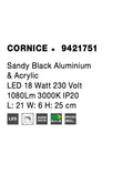 CORNICE Sandy Black Aluminium & Acrylic LED 18 Watt 230 Volt 1080Lm 3000K IP20 L: 21 W: 6 H: 25 cm