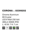 CORONA Chrome Aluminium K9 Crystal LED 8 Watt 230 Volt 480Lm 3000K IP20 L: 40 W: 7 H: 7 cm