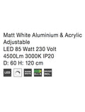 DEA Matt White Aluminium & Acrylic Adjustable LED 85 Watt 4500Lm 3000K IP20 D: 60 H: 120 cm