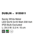 DUBLIN Sandy White Metal LED GU10 2x10 Watt 230 Volt IP20 Bulb Excluded L: 24.5 W: 5.5 H: 15 cm