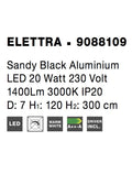 ELETTRA Sandy Black Aluminium LED 20 Watt 230 Volt 1400Lm 3000K IP20 D: 7 H1: 120 H2: 300 cm