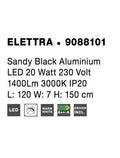 ELETTRA Sandy Black Aluminium LED 20 Watt 230 Volt 1400Lm 3000K IP20 L: 120 W: 7 H: 150 cm