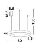 ELOWEN Triac Dimmable Brushed Silver Aluminium & Acrylic LED 60 Watt 220 Volt 2552Lm 3000K IP20 Up & Down Light D: 60 H: 150 cm Adjustable Height