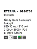 ETERNA Dimmable Sandy Black Aluminium & Acrylic LED 30 Watt 230 Volt 2100Lm 3000K IP20 L: 50 H: 120 cm