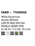 FANO White Aluminium Acrylic Diffuser LED 34 Watt 2040Lm 3000K IP20 D: 50 H1: 11.5 H2: 15.5 cm