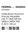 FERROL Coffee Brown Aluminium & Acrylic Adjustable LED 111 Watt 5500Lm 3000K IP20 D: 80 H: 150 cm