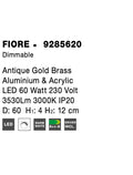 FIORE Antique Gold Brass Aluminium & Acrylic LED 60 Watt 230 Volt 3530Lm 3000K IP20 D: 60 H1: 4 H2: 12 cm