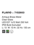 FLAVIO Antique Metal Brass Clear Glass LED E27 1x12 Watt 230 Volt IP20 Bulb Excluded L: 13 H1: 32 H2: 130 cm