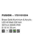 FUSION Brass Gold Aluminium & Acrylic LED 40 Watt 230 Volt 3017Lm 3000K IP20 D: 51 H: 20 cm