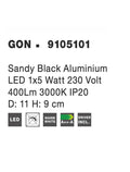 GON Sandy Black Aluminium LED 5 Watt 230 Volt 400Lm 3000K IP20 D: 11 H: 9 cm