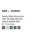 GON Sandy White Aluminium LED 5 Watt 230 Volt 400Lm 3000K IP20 D: 11 H: 9 cm