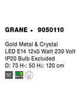 GRANE Gold Metal & Crystal LED E14 12x5 Watt 230 Volt IP20 Bulb Excluded D: 73 H1: 50 H2: 120 cm