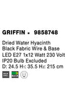 GRIFFIN Dried Water Hyacinth Black Fabric Wire & Base LED E27 1x12 Watt 230 Volt IP20 Bulb Excluded D: 24.5 H1: 35.5 H2: 215 cm