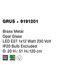 GRUS Brass Metal Opal Glass LED E27 1x12 Watt 230 Volt IP20 Bulb Excluded D: 20 H1: 51 H2:120 cm