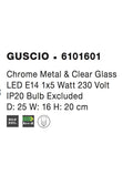 GUSCIO Chrome Metal & Clear Glass LED E14 1x5 Watt 230 Volt IP20 Bulb Excluded D: 25 W: 16 H: 20 cm